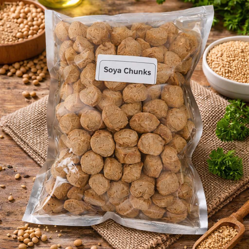 Packed with essential nutrients like protein, fiber, iron, and calcium, soyabean chunks help support muscle growth, digestion, and overall wellness. Easy to cook and highly versatile, they can be used in curries, pulao, biryani, snacks, and gravies.